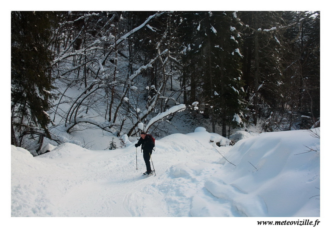 Le sentier est large et ça tombe bien car nous croisons quelques skieurs de randos en train de redescendre au parking