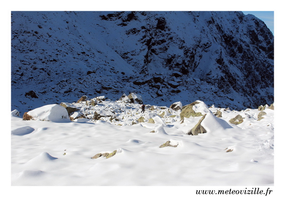 Pic de Belledonne, tout est blanc, environ 10 cm à 2200 m. On ne pouvait trouver