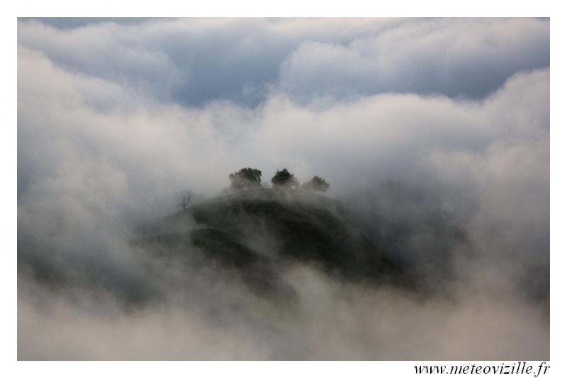 Le village de Villard Reymond se trouve au premier plan dans la brume sous le