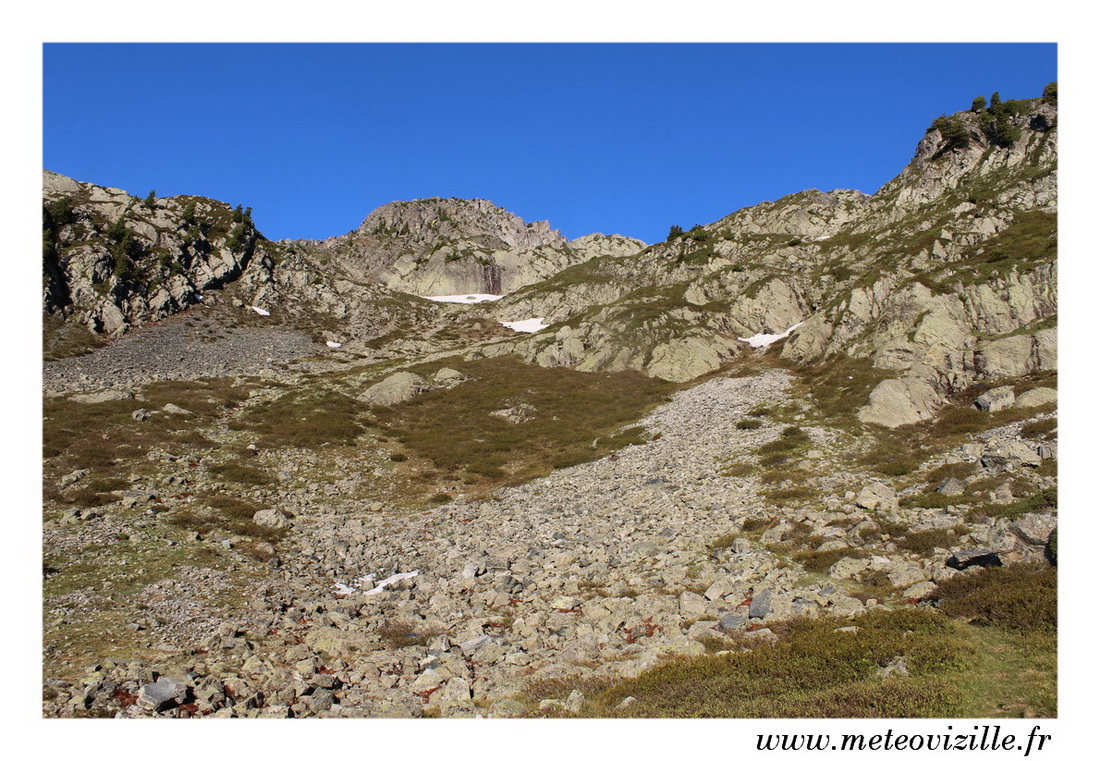 des pierriers et en évitant les névés sauf sous la Brèche mais la neige est